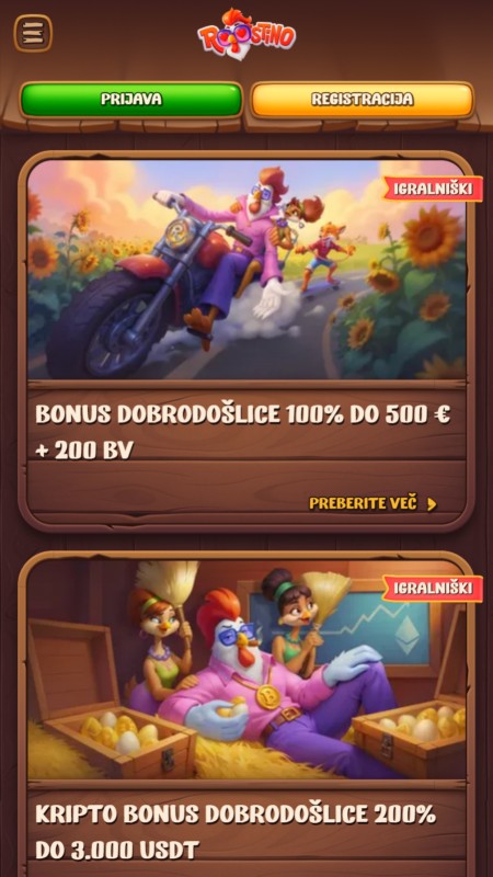 Roostino je spletna igralnica, ki združi klasično kazino ponudbo z igrivim sistemom nagrad. Poleg velike zbirke slotov ima tudi live casino, turnirje in VIP pot, vse skupaj pa je zapakirano v tematsko zgodbo farme. V tem pregledu opisujem, kaj me je na platformi prepričalo, kje so omejitve in na kaj je dobro paziti pred prvim pologom.