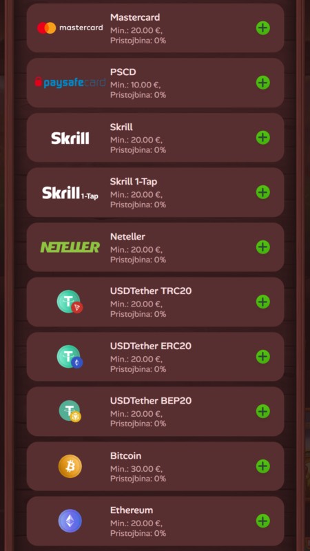 Minimalni polog je pri Roostinu običajno 20 €, kar je tudi prag za aktivacijo dobrodošlice. Minimalna stava je pri večini slotov nizka, pogosto okoli 0,10 €, najvišji limiti pa so odvisni od igre in izbrane metode. Če igraš z bonusom, bodi pozoren tudi na omejitev največje dovoljene stave, ki je pogosto določena v pravilih promocije.