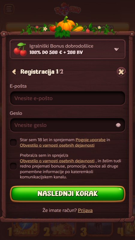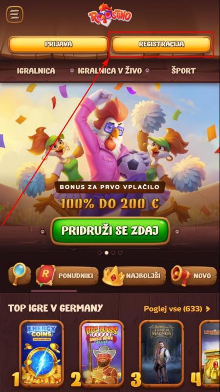 Registracija na Roostino je preprosta in ne vzame veliko časa. Vse skupaj gre skozi nekaj osnovnih korakov, potem pa lahko takoj nadaljuješ na polog ali pa najprej pogledaš igre. Če se odločiš za bonus, ga običajno izbereš med prijavo.