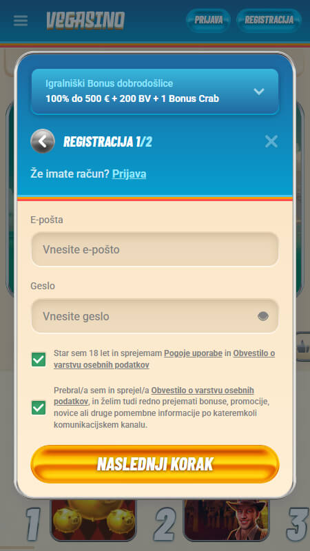 Registracija je kratka, zato si do prve igre in promocij pripravljen v nekaj minutah.