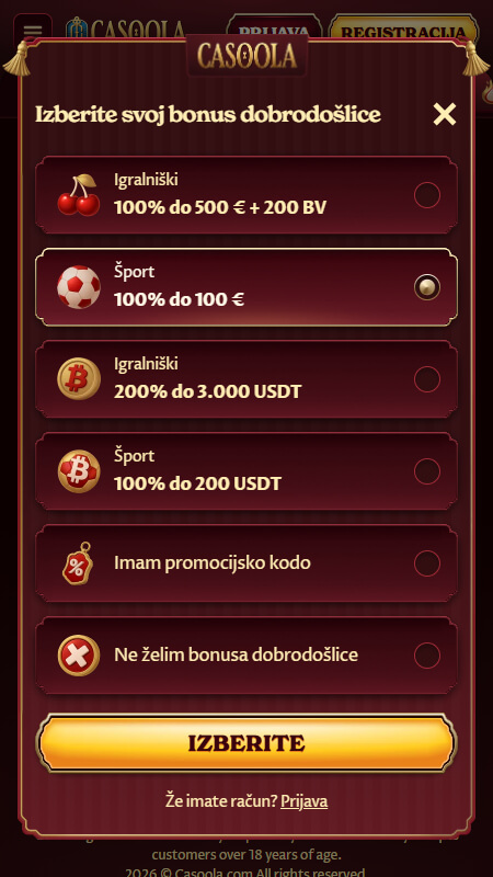 Casoola sem začel raziskovati, ker mi je bila všeč ideja o platformi, ki združi športne stave, stave v živo in še nekaj dodatnih funkcij, ki jih običajno vidiš šele pri večjih brandih. V tej obliki je Casoola na spletu aktivna vsaj od leta 2020, kar se pozna tudi na urejenosti pravil in promocij. V nadaljevanju opisujem, kako sem doživel registracijo, bonuse, plačila in samo športno ponudbo, da si lahko hitro ustvariš realno sliko, ali ti njihov slog stav ustreza.