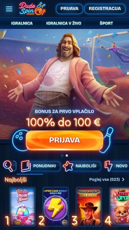 Če ti med tekmami “pade forma”, lahko z enim klikom skočiš v DudeSpin casino, kjer je zbirka iger ogromna – več kot 10.000 naslovov. Najdeš vse od klasičnih slotov in megaways avtomatov do crash iger, bingo sob in bogate izbire live miz. Ker je račun enoten, bonus sredstva in stanje enostavno preklapljata med športom in casinjem, kar naredi platformo bolj fleksibilno kot pri marsikaterem konkurentu.