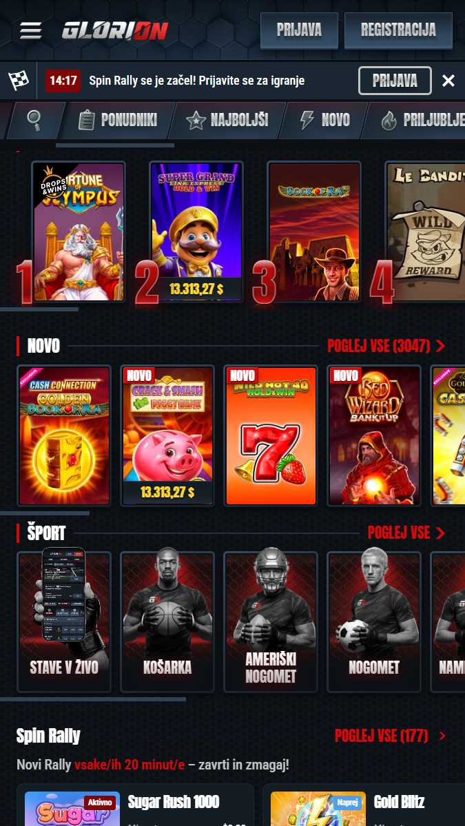 Glorion v živo stavo predstavlja zelo dinamično, še posebej okoli borilnih večerov, kjer se pogosto vrtijo kratki posnetki in poudarki dogodkov. V živo lahko hitro preklapljate med tekmami, spremljate spreminjanje kvot in izkoristite funkcije, kot je predčasno izplačilo v izbranih primerih. Če imate radi hitro dogajanje, je to eden delov, kjer Glorion res pokaže svoj karakter.