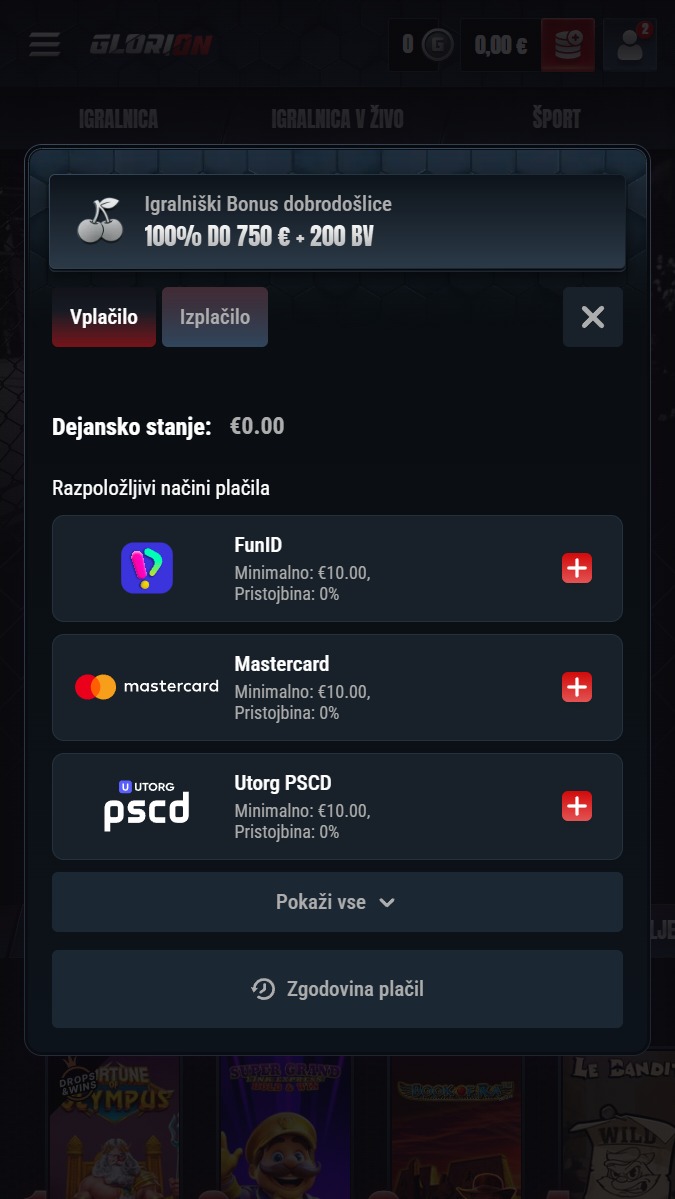 Poleg športnih stav Glorion ponuja tudi igralniški del z avtomati, igrami v živo in različnimi tematskimi vsebinami. V tem pregledu je poudarek na stavnici, casino sekcija pa je bolj kot dodatek za tiste, ki radi kombinirajo več vrst zabave na enem mestu.