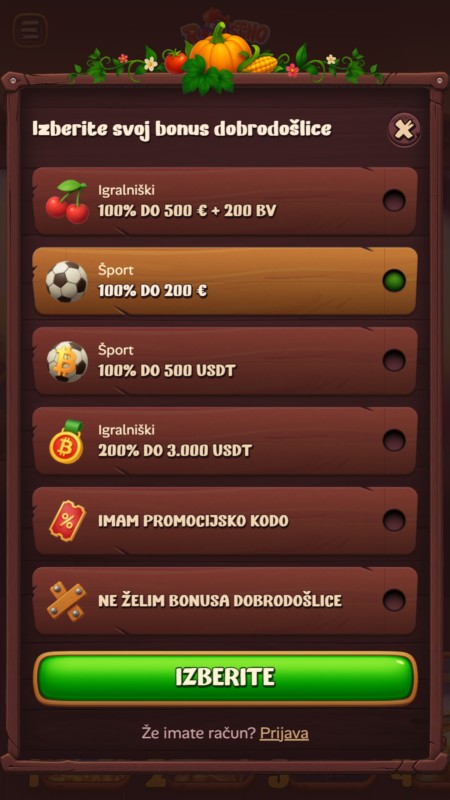 | 🎁 Bonus dobrodošlice | 100 % do 200 € ali Kripto bonus 100 % do 500 USDT. |