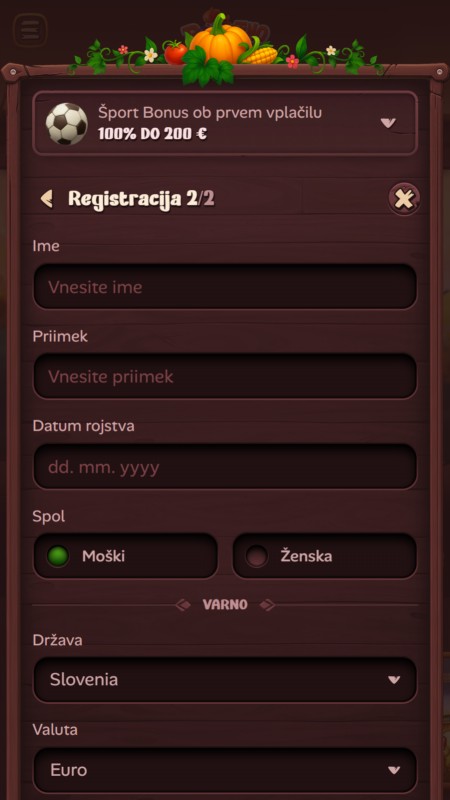 | 🎁 Bonus dobrodošlice | 100% bonus na prvi polog za šport do 200 €, minimalni depozit 20 €, pogoji stavljenja praviloma 6x (depozit + bonus). |